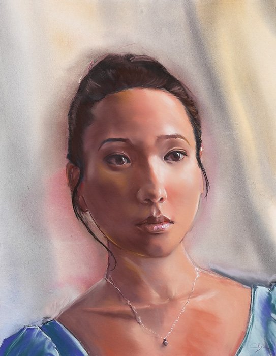 Dans un portrait, la peinture permet de préparer les valeurs de la peau en montant progressivement les contrastes, offrant un guide à suivre plus facilement avec ses pastels.